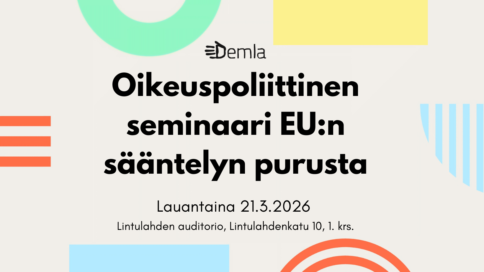Tiedustelut: seminaari@demla.fi.